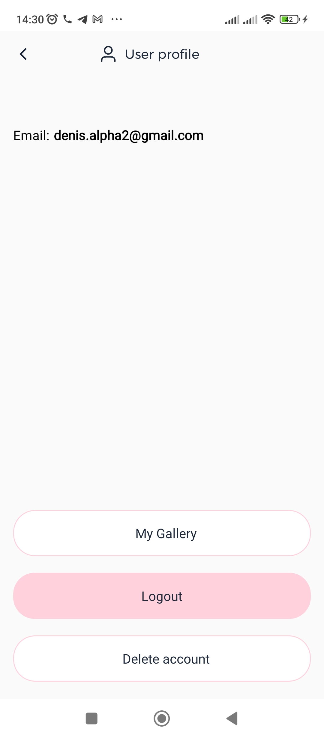 2. Then, please click on the "Delete account" button on the user profile screen (Fig. 2).